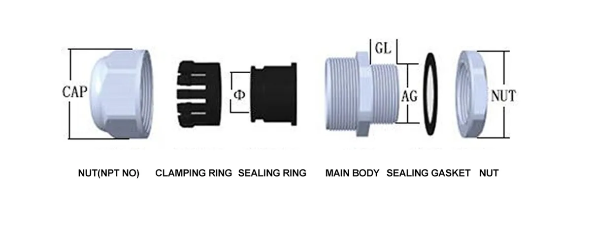 | PN | Metrik | φ mm | GL mm | nut/cap mm |