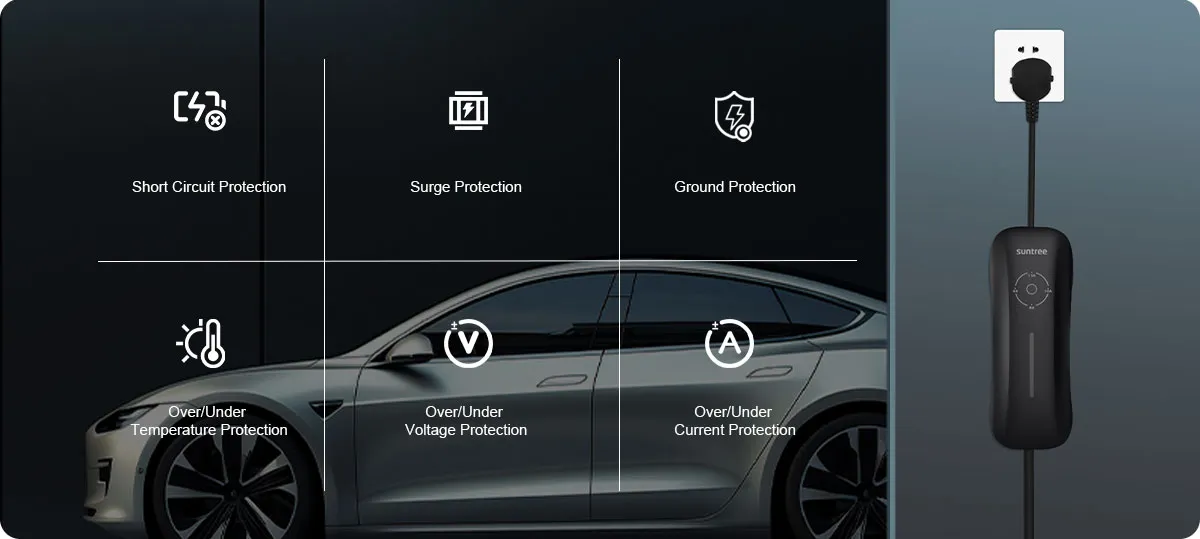 | Perlindungan Berganda | Perlindungan Arus Berlebihan/Kurang, Perlindungan Litar Pintas, Perlindungan Tanah, Perlindungan Lonjakan, Perlindungan Voltan Berlebihan/Kurang, Perlindungan Suhu Berlebihan/Kurang | ||