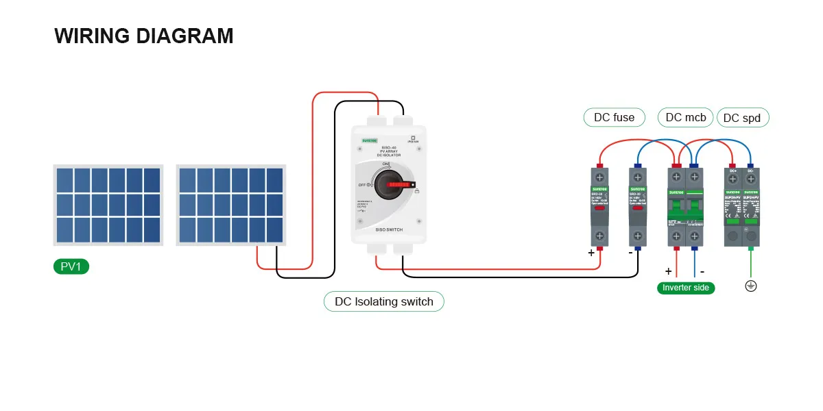 • Set rentetan fotovoltaik memerlukan perlindungan litar fus DC untuk membuang kerosakan