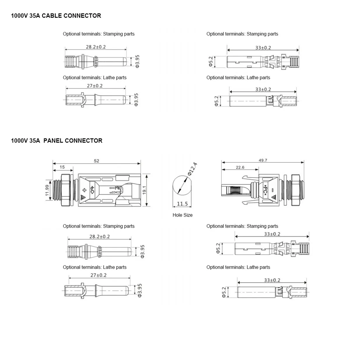 | Arus dinilai | 30A (2.5-6mm²) | 30A (2.5-6mm²) | 35A | 35A |